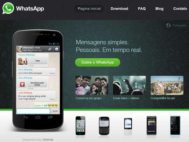 Além de texto, o WhatsApp também permite a você compartilhar fotos, vídeos, sons, contatos e até a sua localização por meio do GPS do dispositivo.